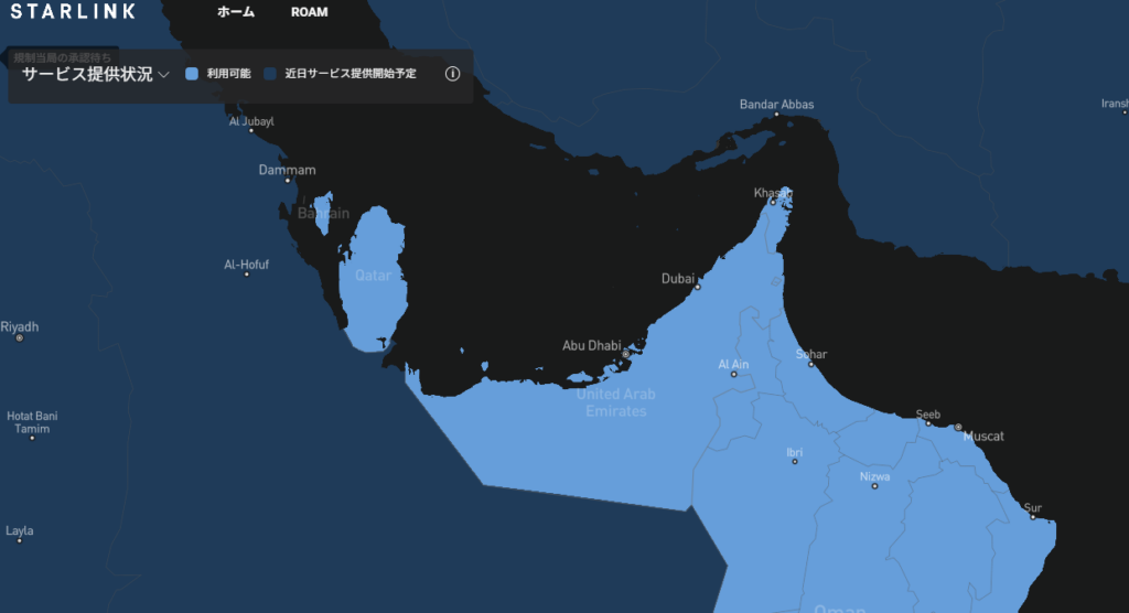 中東では以下の国々でStarlinkが利用可能(または承認済み)です: